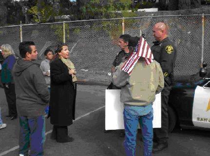The Mexican diplomat, above, approached the Minutemen as the Minutemen were peacefully strolling about- on United States public school property - observing and taking photos of the event.