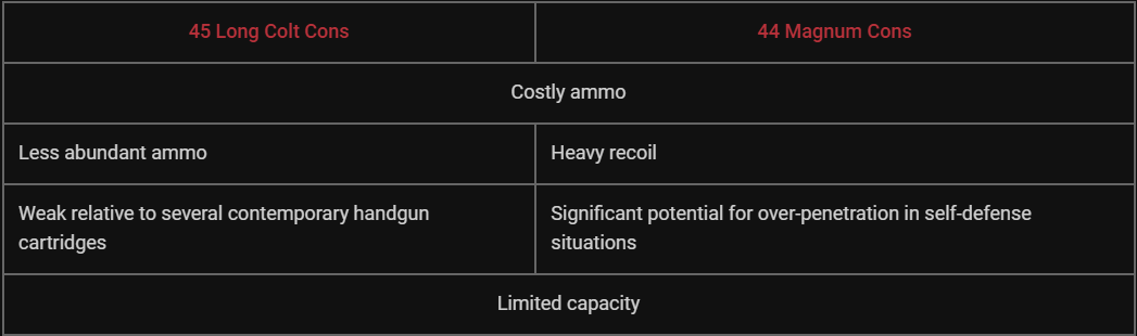 Read more: 45 Long Colt vs. 44 Magnum: Big Handgun Energy