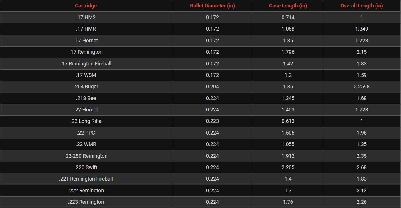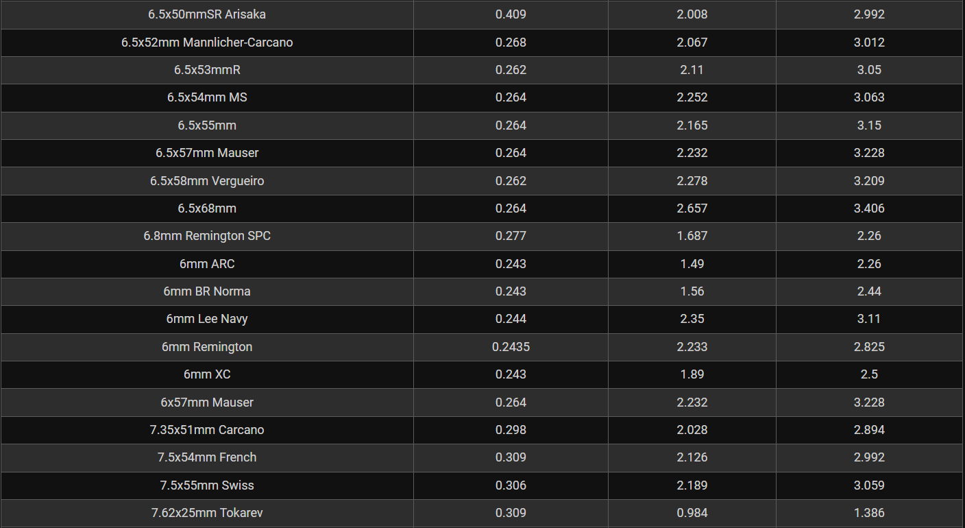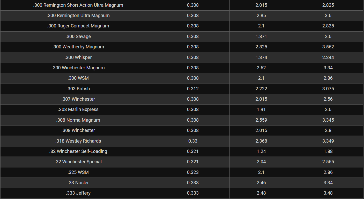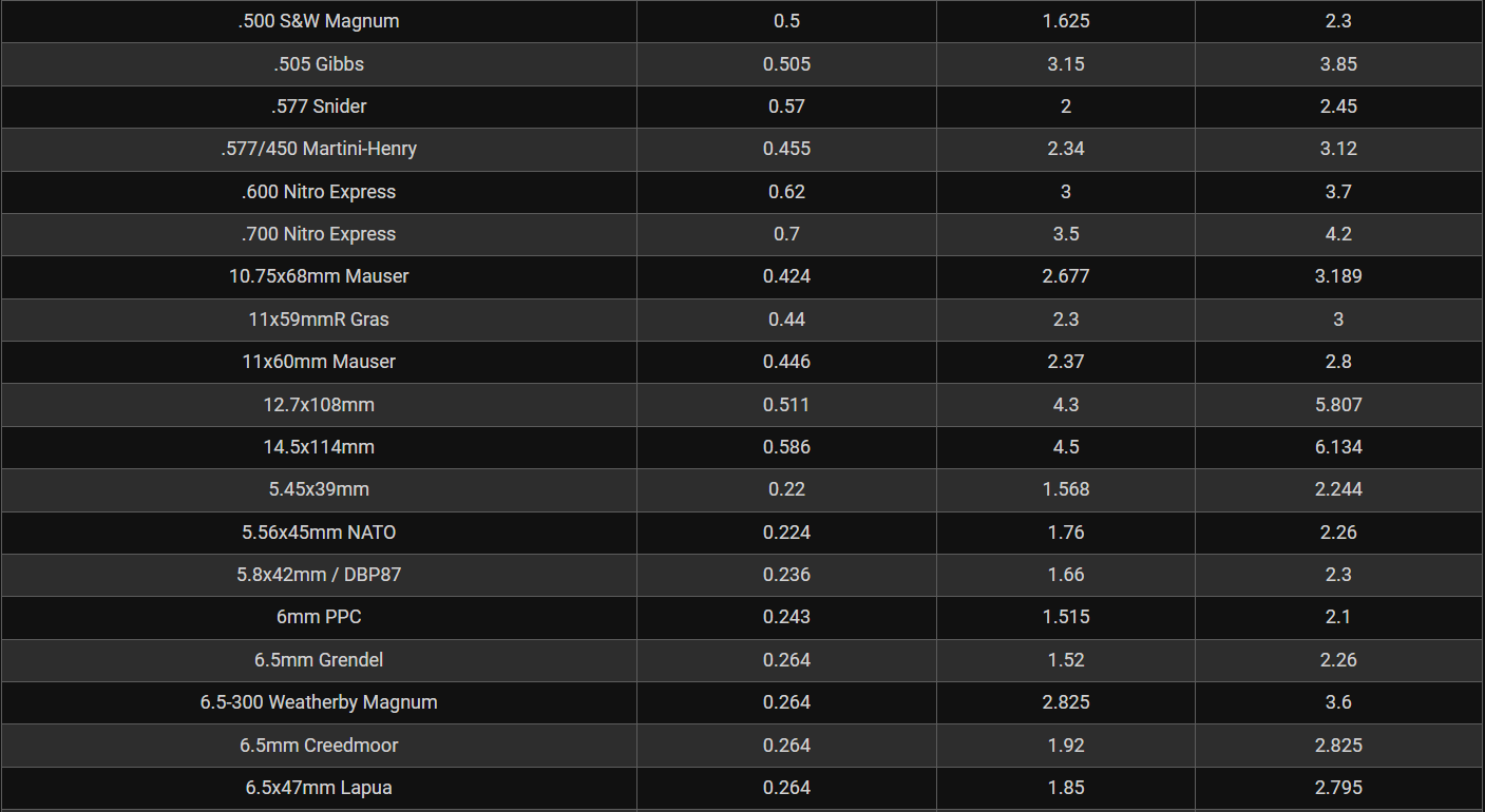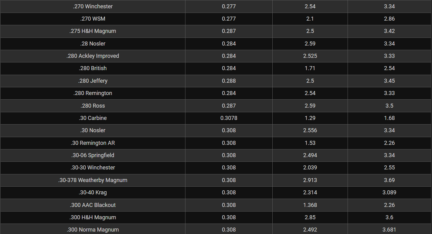 Rifle Caliber Chart