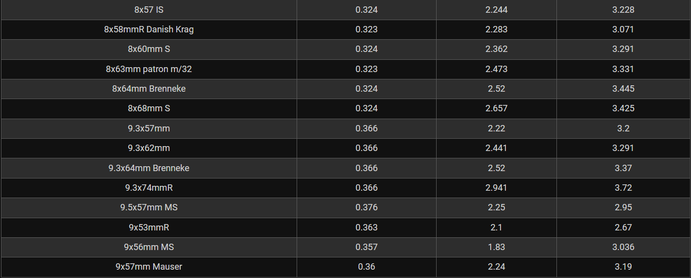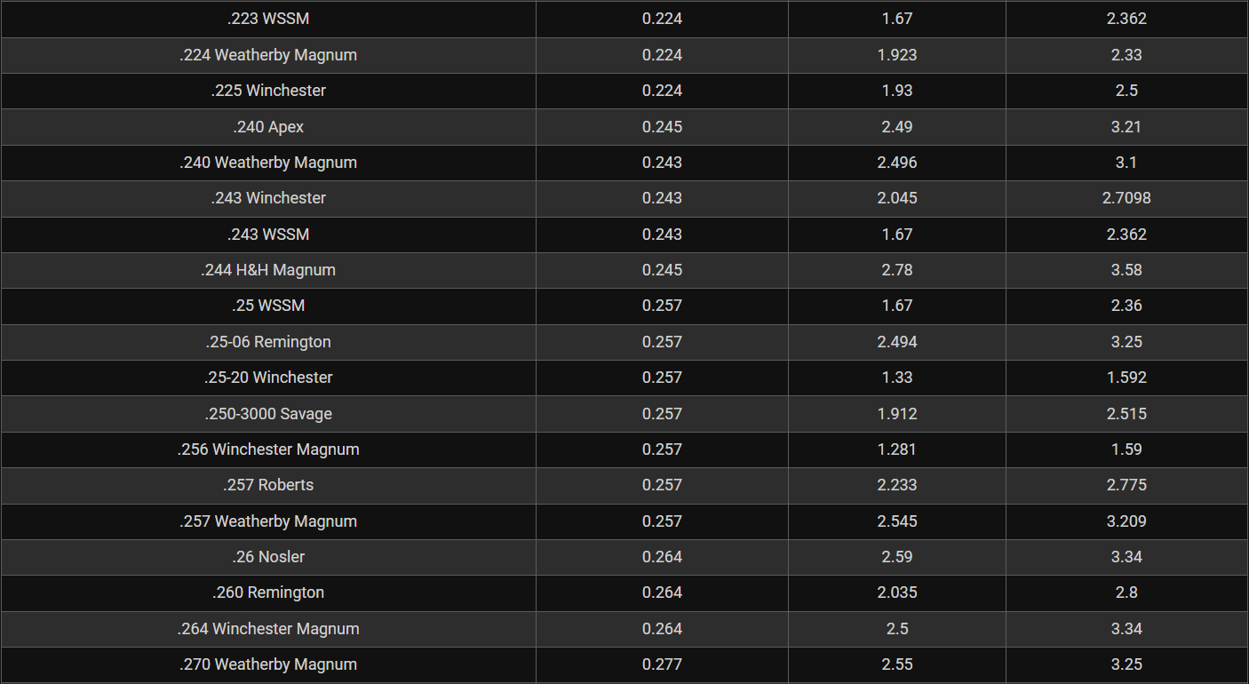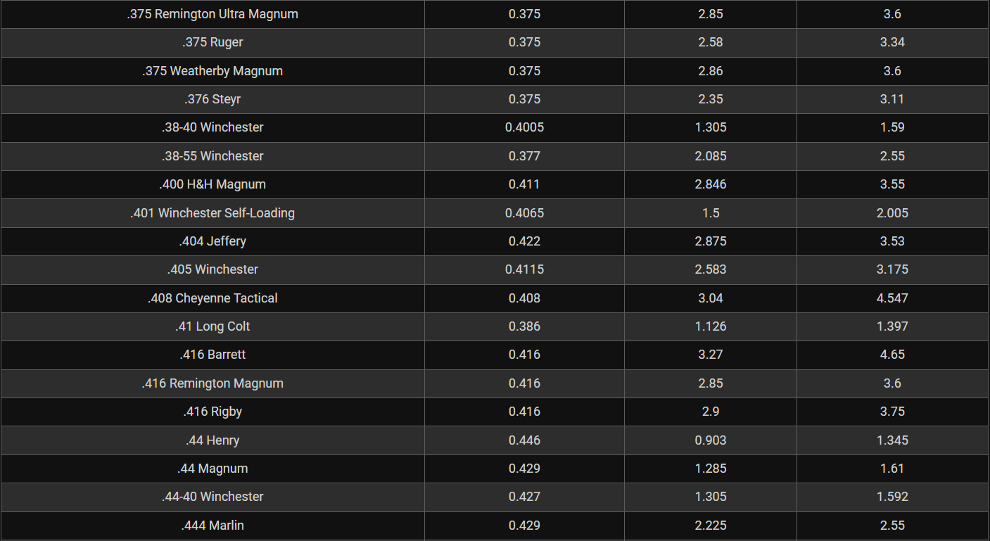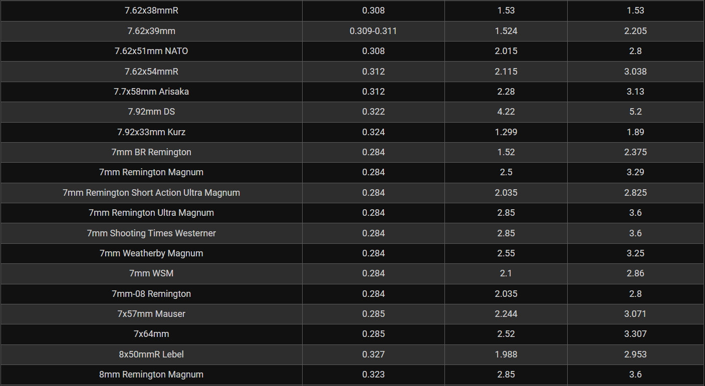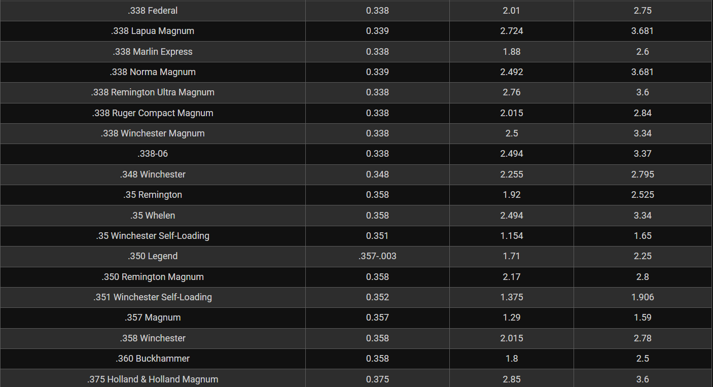 Rifle Caliber Chart