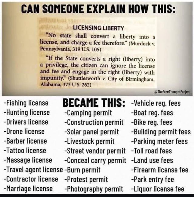 **QQ**No state shall convert a liberty into a license, and charge a fee therefore**QQ** (Murdock v.