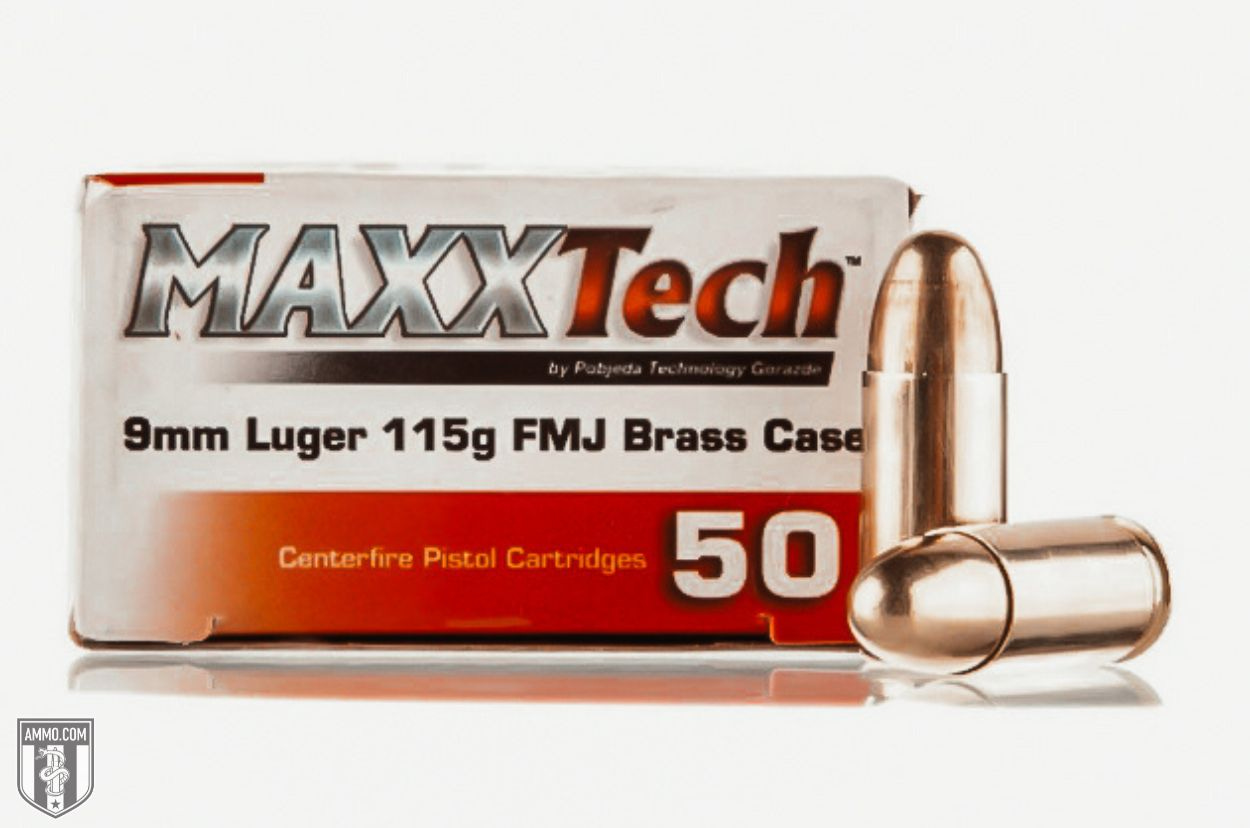 9mm Luger 124 grain FMJ and 9mm 115 grain FMJ are MaxxTech's most popular products.