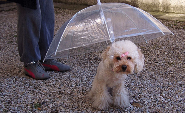 The dogbrella is for you! It keeps your pet dry and comfortable in the rain.