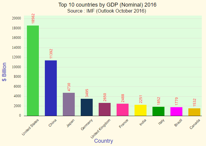 UK's 2016 GDP of GBP 1.87 trillion converts to $2.29 trillion at exchange rate of ~GBP 0.81 per $1.