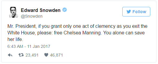 We noted previously that there was a number of high profile cases in front of President Obama as he prepares to leave The White House including Edward Snowden who tweeted yesterday…