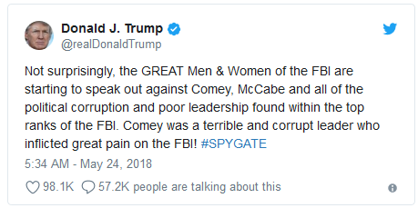 The President hit out at former FBI head James Comey, noting that the rank and file of the FBI are eager to speak out against the man Trump fired.