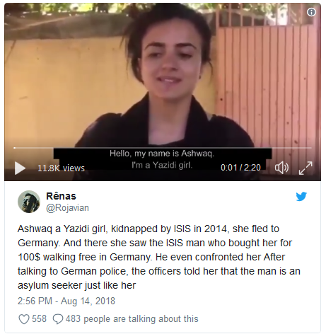 Yazidi Teenager Meets ISIS Captor Who Enslaved Her; He's Now a "Refugee" in Germany