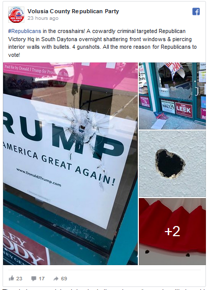 The chairman explained that he believes it was "more than likely a drive-by shooting." He added, that the person who did this was "sick" and most likely a Democrat.