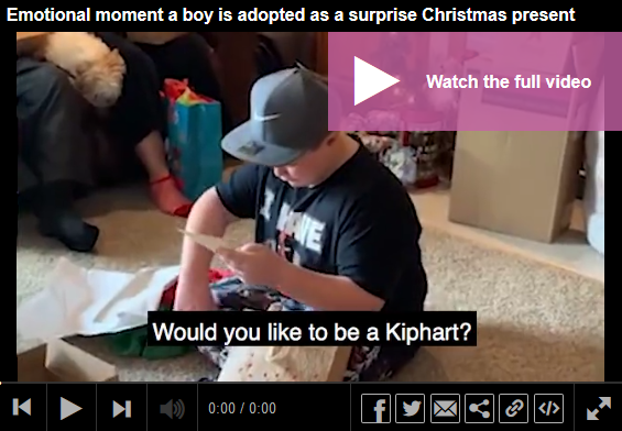 The moment a young boy was adopted as a surprise for Christmas has been captured in a tear-jerking video.
