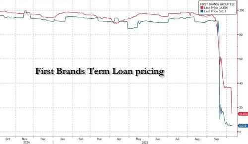 Hot on the heels of the spectacular implosion of subprime auto lender Tricolor (whose name is a not too subtle reference to the Mexican flag, and appropriately so as the company was almost exclusively targeting illegal aliens as its customers, so probably not a shock that it had a very unhappy ending), last month's mega bankruptcy was that of First Brands, an auto parts supplier with $5.8 billion in outstanding leveraged loan debt, yet it increasingly appears the company had far more liabilities than previously known as a result of what now learn learn, was extensive rehypothecation of said debt, a practice traditionally associated with such unregulated banana republics as China (who can possibly forget the country's copper rehypothecation scandal a decade ago). Adding to the complexity of this blistering meltdown, which has seen the company's debt trade from par to the teens in hours…