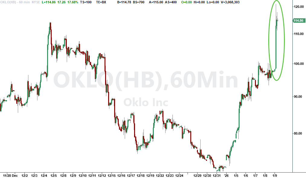 Shares of VST and OKLO spiked about 10% and 20%, respectively, in the premarket.